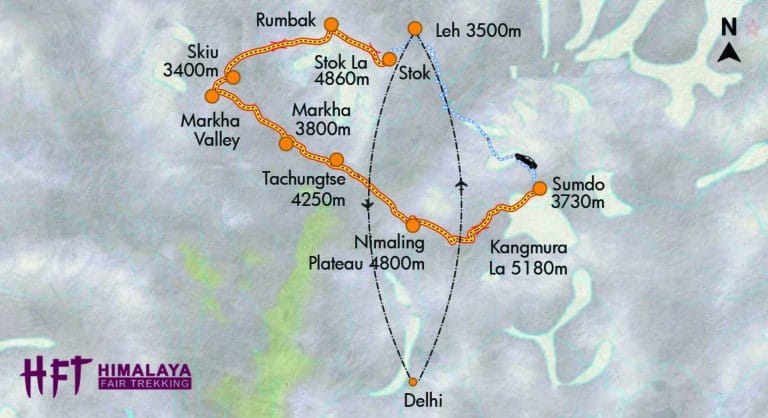 Eine klassische Reise zum Kennenlernen von Ladakh und aufgrund der Kürze des Treks eine Empfehlung für erfahrene Trekker mit knappem Zeitbudget. Markha liegt im trockenen, wüstenhaften Ladakh, das Flusstal liegt im Hemis-Nationalpark und ist von wirklich atemberaubender Schönheit.