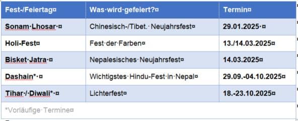 In Nepal wenden Sie sich bei jedweder Art von Sicherheits- oder sonstigen Problemen zu jeder Tages- und Nachtzeit an unseren Partner. Dort erreichen Sie unter der Ihnen mit den Reisedokumenten ausgehändigten Telefonnummer rund um die Uhr einen Ansprechpartner.