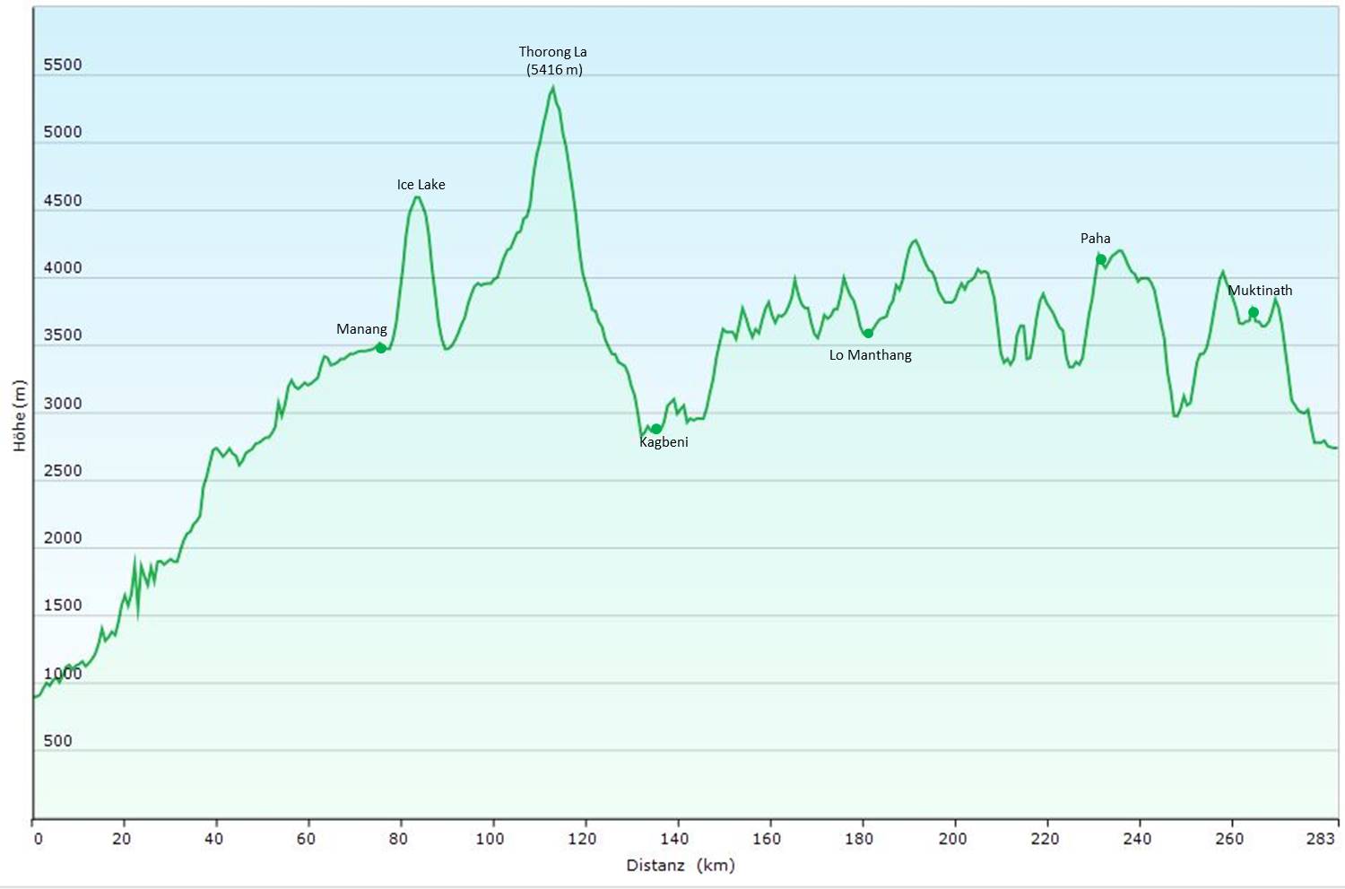 Zur Tour selbst ist zu sagen, dass größtenteils auf Straßen bzw. Schotterpisten gelaufen wird. Daher sind die Wege zeitweise wenig spannend, teilweise auch enttäuschend, da man auf dem ersten Teil bis „Thorong Phedi“ häufiger natürlich mit Autos und Mopeds konfrontiert wird. Der Verkehr ist nicht dramatisch, aber in Kombination mit der Piste einfach nicht das was man erwartet hat und sehen möchte. Keine Frage, für die Einheimischen toll und eine Erleichterung, aber das Trekkingerlebnis in diesem Punkt eher nicht so gut. Die Gegend drumherum ist natürlich wunderschön und entschädigt zum großen Teil. Man ist sich des Problems jedoch bewusst und bereits dabei, alte Routen, jenseits der Straße, wieder zu aktivieren, um den Touristen Alternativen zu bieten.